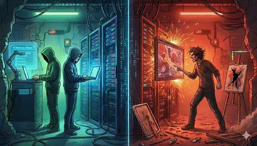 The other day I was watching [thePrimeTimeagen]https://youtube.com/@theprimetimeagen?si=jVcp23FbfQSFZfDc) and he talked about devs loving ai and artists revolting. There was some discussion in chat about art being more creative and prime quickly squashed that. He ended with being oddly confused why developers are jumping on board and artists are not. Both had their art stolen to build out the models.