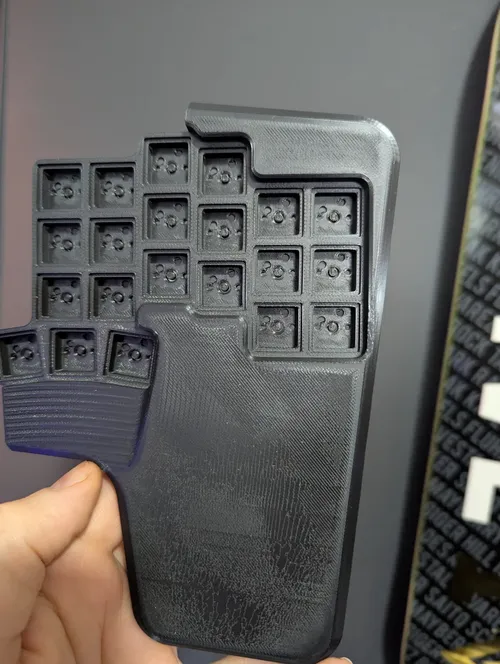 Back to work tomorrow, cannot believe how quick the break went!!! This year was twofold, we went on a real vacation this year and used a lot of vacation days, also we were all sick for the entire break. I pushed through the last day of work as the illness was kicking in, now just getting to the other side of it and its already time to go back. I did finally take time for a new keyboard build. Its working really well so far. I am missing quite a few keys, but have enough to make this post pretty effectively. New switches arrive on Saturday and Ill fully finish it. So far the build feels really good, everything went together solid and feels good so far. Battery percentage feels like its reporting right on my phone and its working 100% wirelessly. The worst part is that I turned on ironing on the print and this filliment did not agree with it that well.