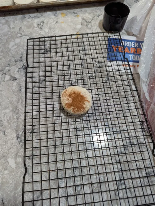 Wyatt wanted to make some seasoned biscuits, I allowed one seasoned one, and he chose cinnamon. It actually did not turn out too bad, probably would not do again with exactly dry cinnamon thrown on a frozen biscuit, but it worked. It was adjacent to a cinnamon role.