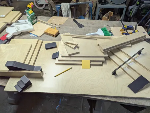 Here is a bigger park setup we were working on before we had to clean up for sanding and painting. Trying to set up a stairset on each end with a pyramid in the middle.