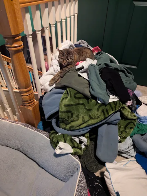 I leave you with a picture of Ginger laying on the pile of kids clothes that I need to wash.