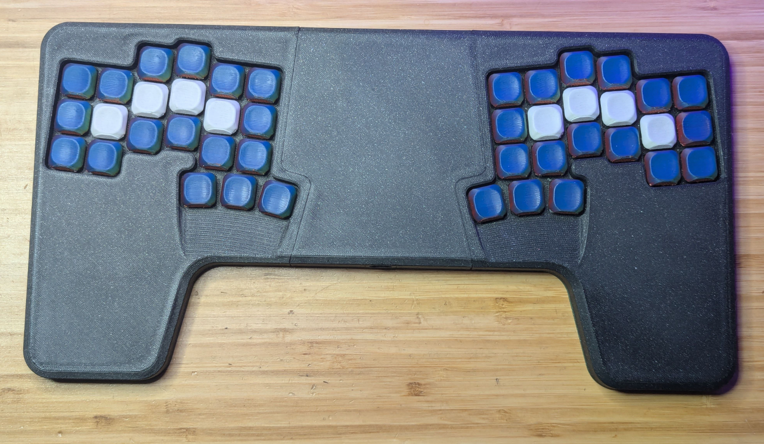 Now what I haven't ran into before is that trying to game with wasd and use the right side is very uncomfortable with this steep of a pinky stagger. Generally with keyboard an mouse games I have the keyboard a little slanted and move my fingers to wasd just fine, but it just does not work well with both hands on the keyboard.
