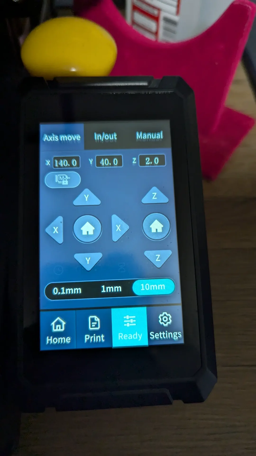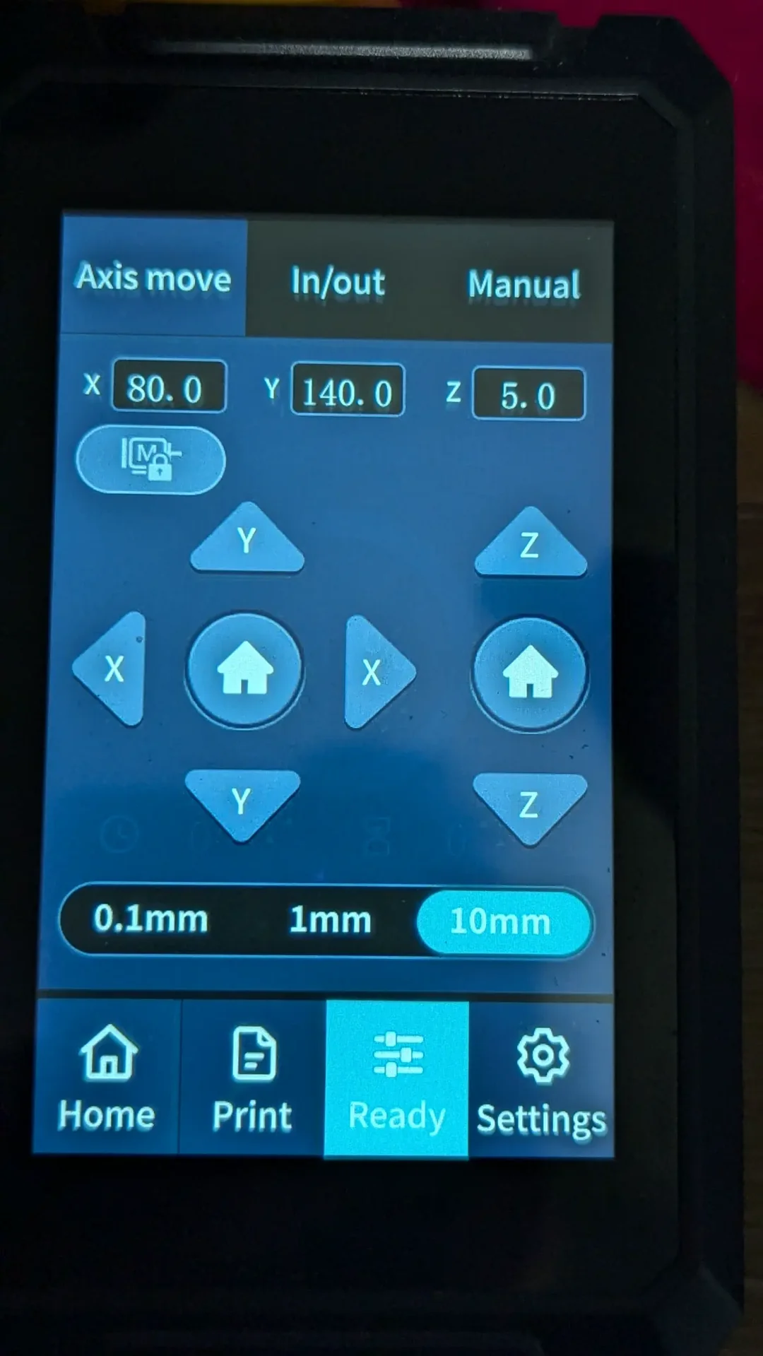 ; KNOCK AND SWEEP G0 X80 Y140 ; move to knock position G0 Z2 ; lower z to knock G0 X140 ; knock G0 Y40 ; sweep