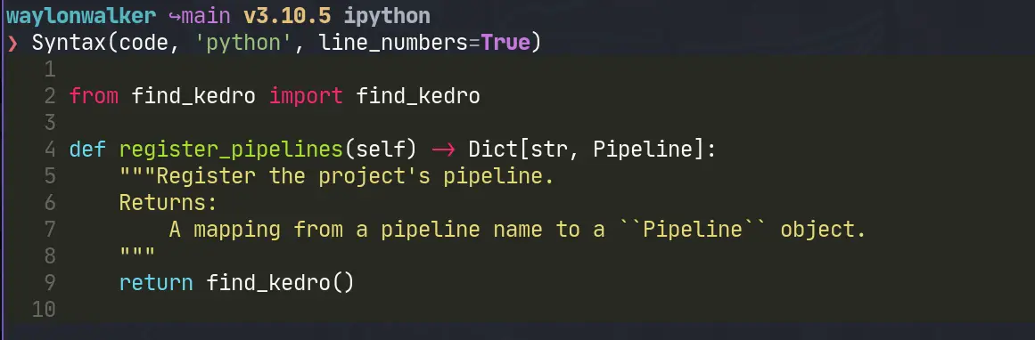 Now we need some code to highlight. I am going to rip my register_pipeline