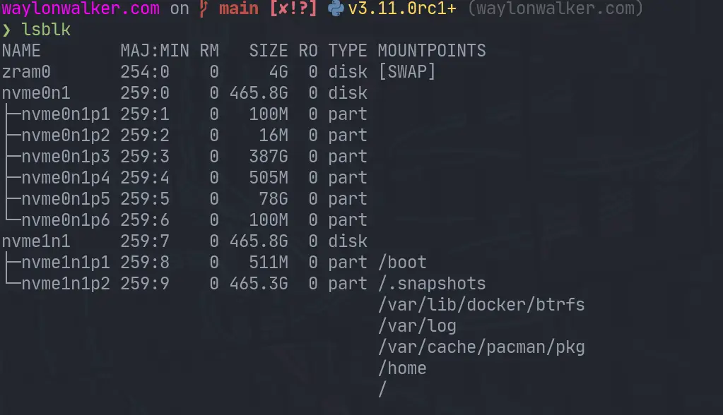 # you might not see snapshots mounted yet lsblk # if you check fstab you will see an entry for it cat /etc/fstab # mount it sudo mount -a # now you should see /.snapshots mounted lsblk
