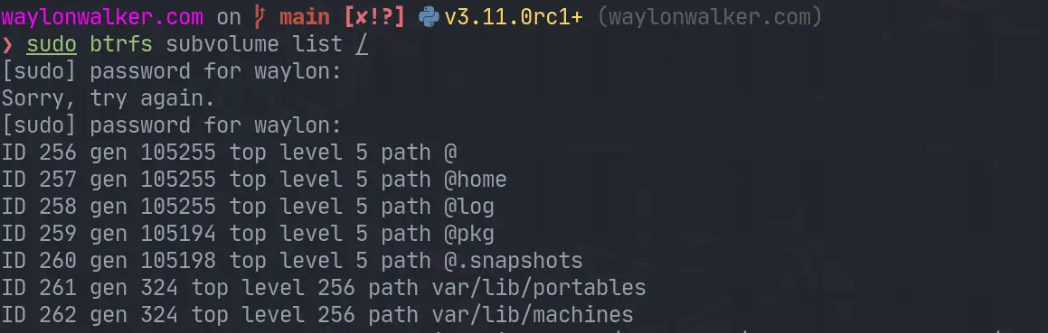 sudo btrfs subvol get-default / sudo btrfs subvol list /