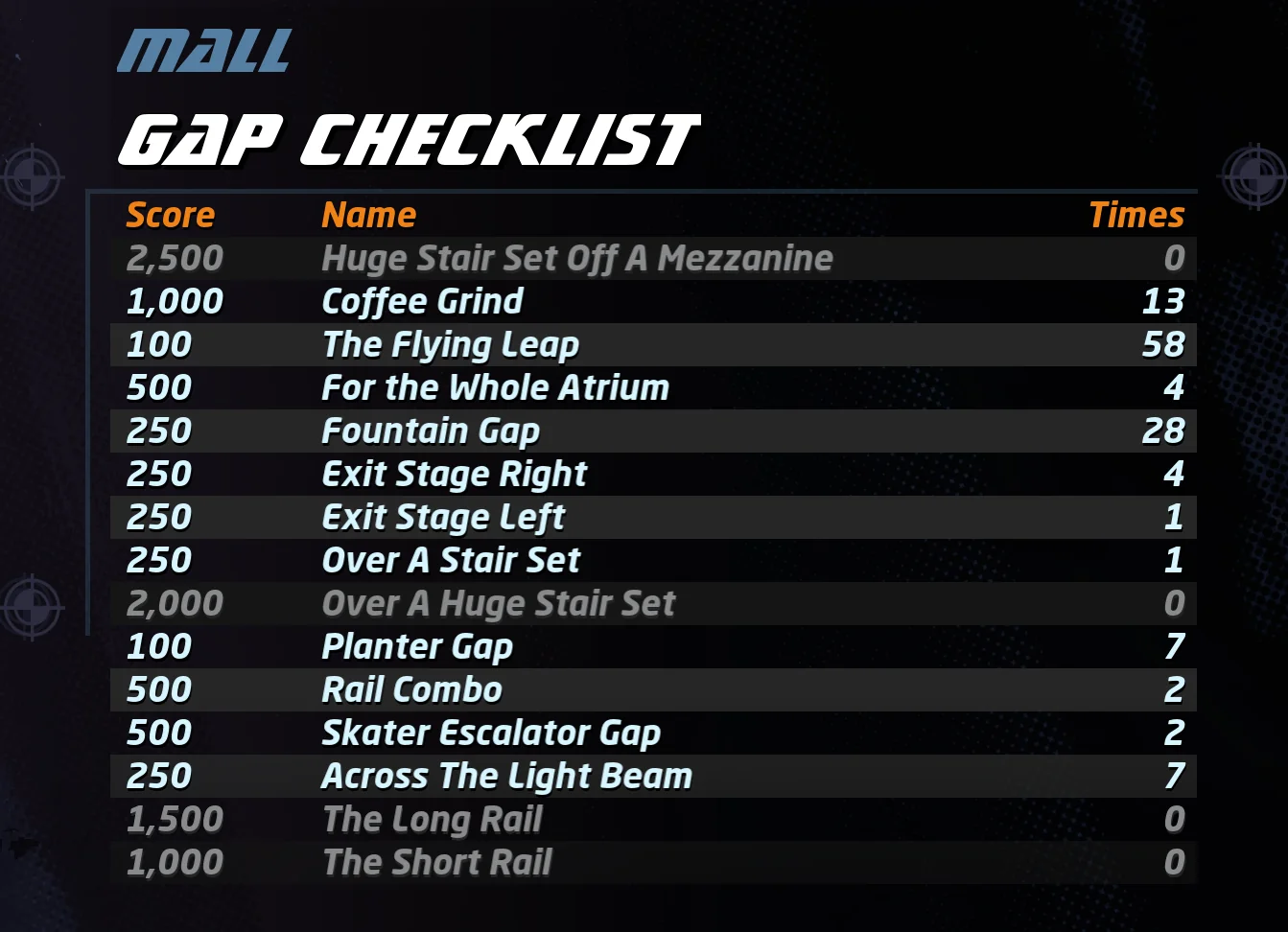 This is one of the most memorable levels for me in THPS1 from when I had originally played it. Surprisingly there aren't as many gaps in it as I thought there would be, there are definitely a lot that you can make up on your own. Anyways here's my playthrough of all the mall gaps in THPS1 on my way to gap master.