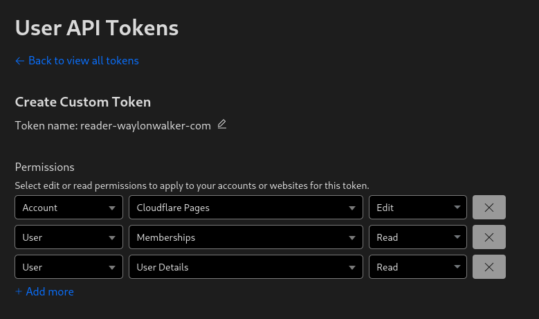 Before deploying to cloudflare pages with wrangler you need a cloudflare api token. You can get one at dash.cloudflare.com/profile/api-tokens.