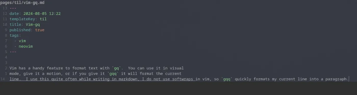 so gqq quickly formats my current line into a paragraph. Once I have done